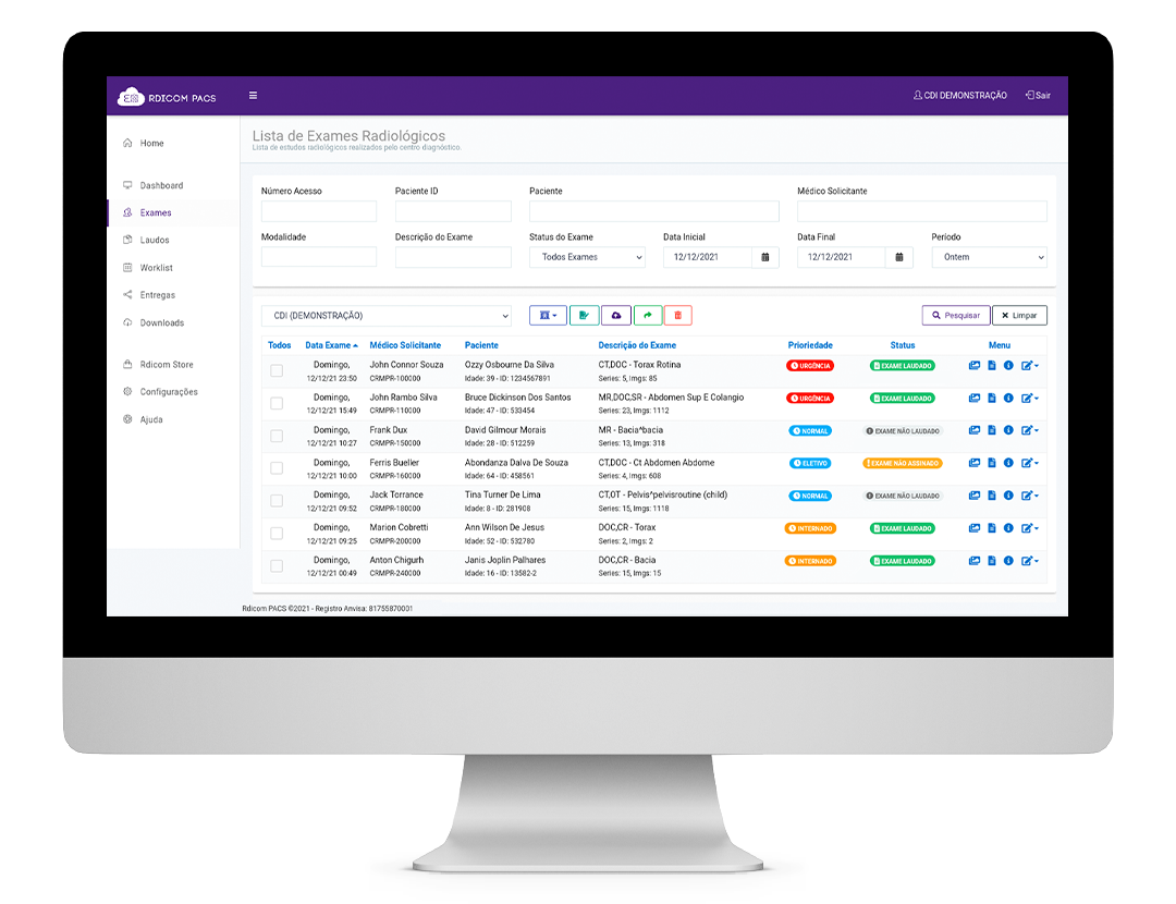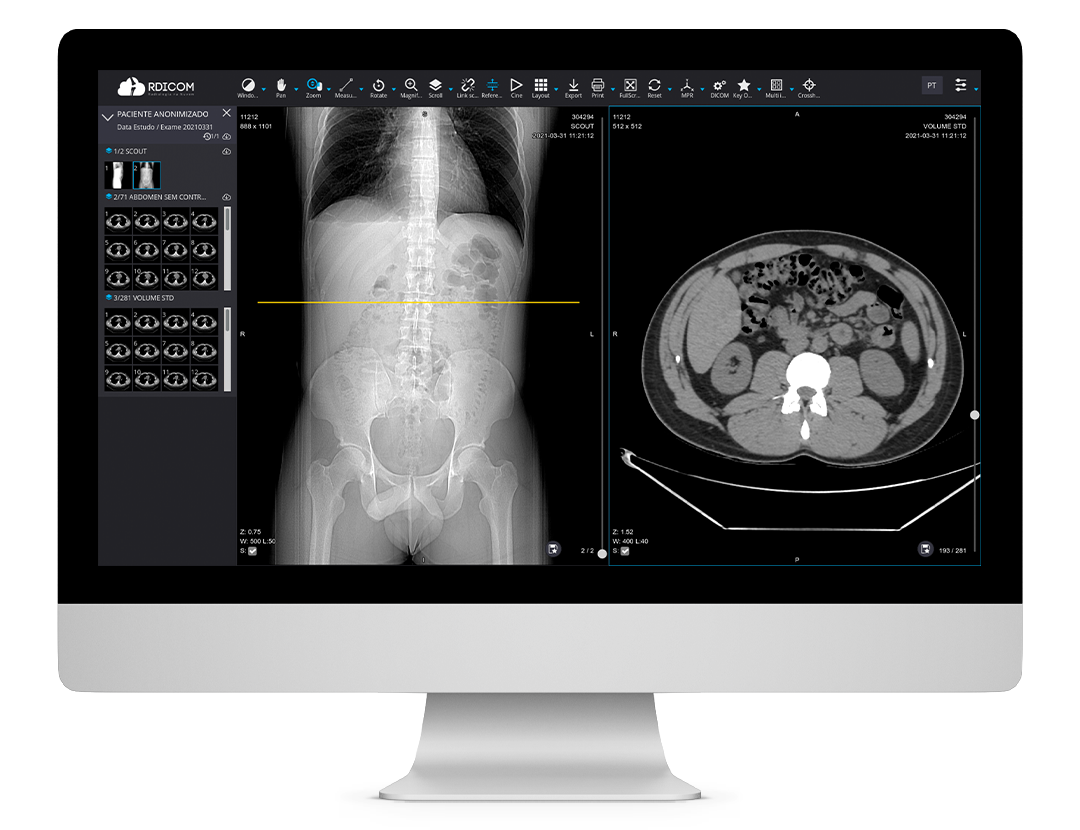Sistema PACS, gestão dos exames radiológicos por imagens.