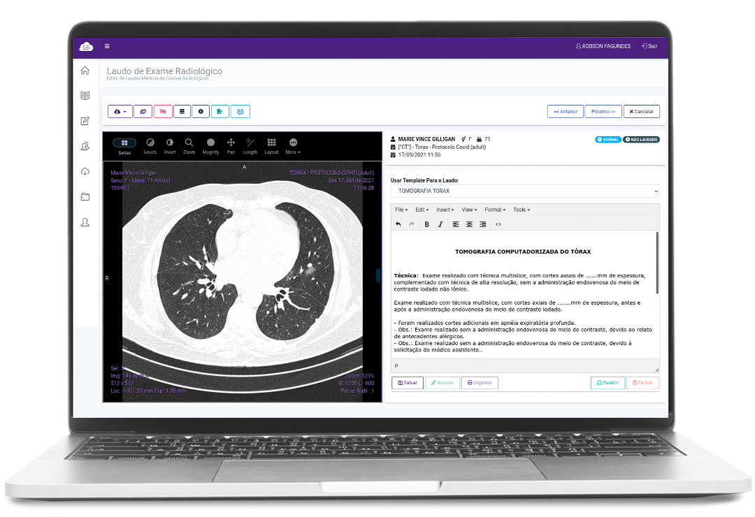 Conjunto de ferramentas para auxiliar o médico radiologista laudar exames remotamente, facilitando a rotina de laudos radiológicos.