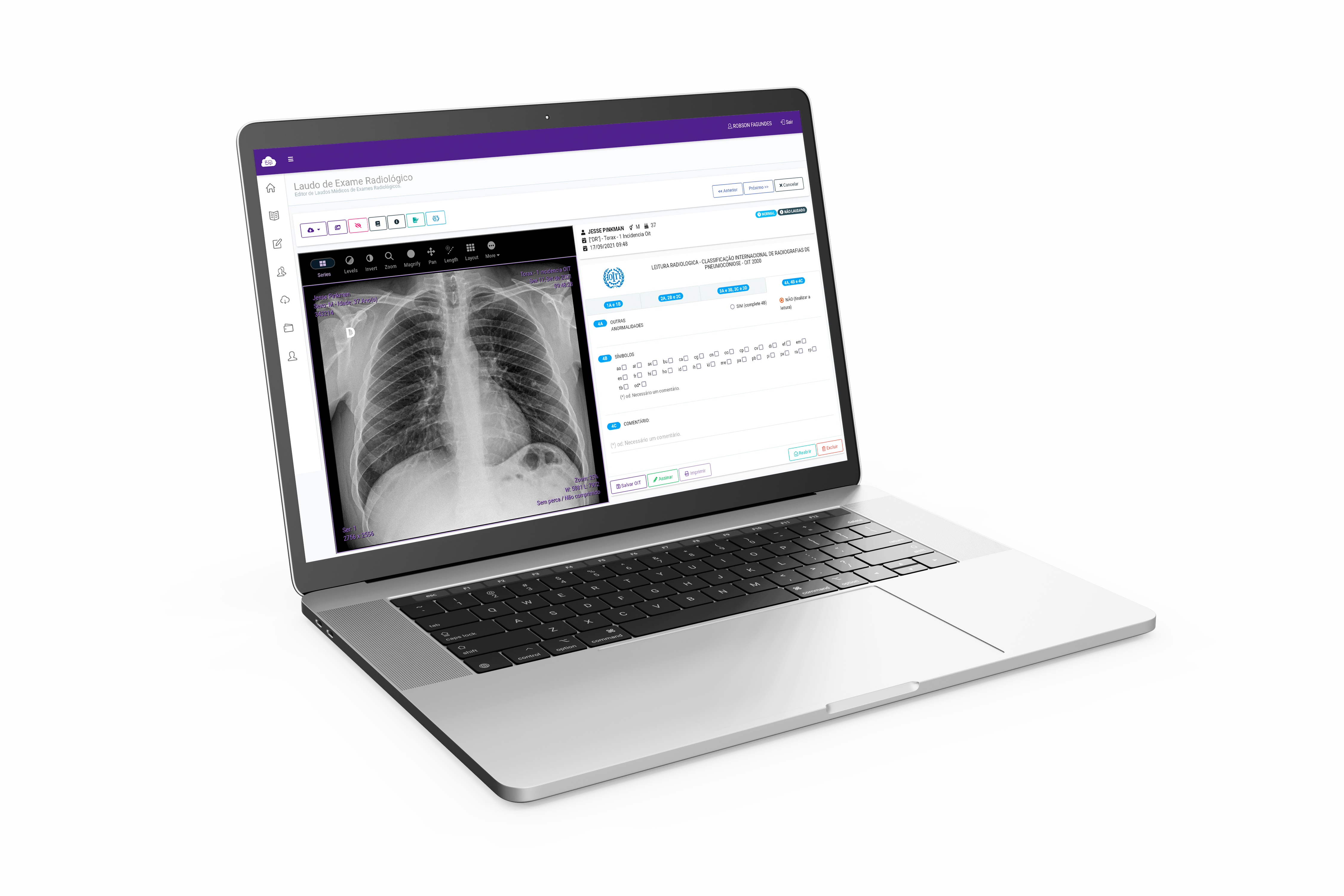 Editor para laudos de raio-x de tórax OIT. Auxilia médicos detectar com exatidão as doenças ocupacionais relacionadas a medicina do trabalho, OIT 2000.
