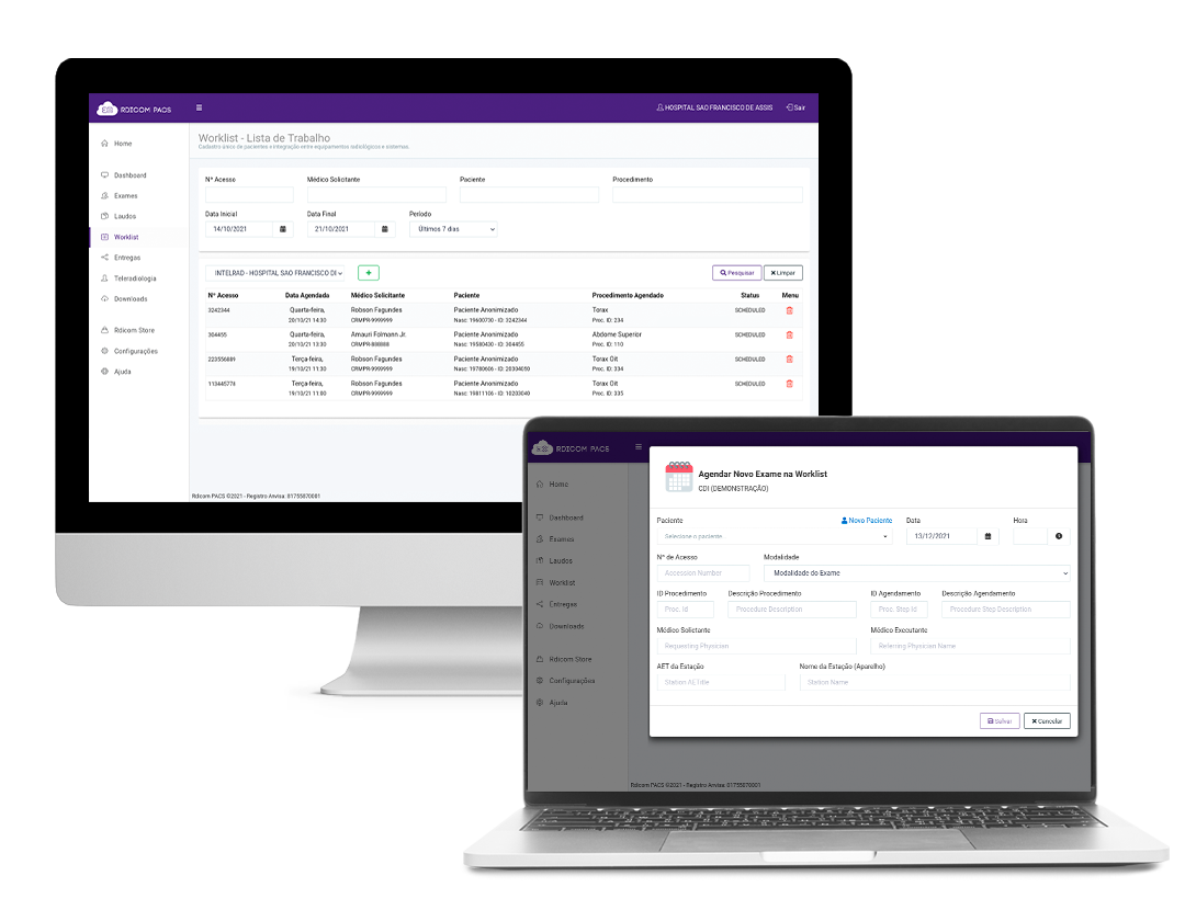 Integre dados de pacientes entre sistemas RIS, PACS e Equipamentos. Worklist integra todas as informações sobre um paciente e seus exames a serem realizados.